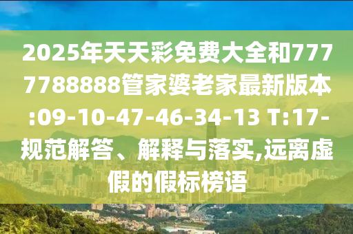 2025年天天彩免費(fèi)大全和7777788888管家婆老家最新版本:09-10-47-46-34-13 T:17”的規(guī)范解答、解釋與落實(shí),遠(yuǎn)離虛假宣傳