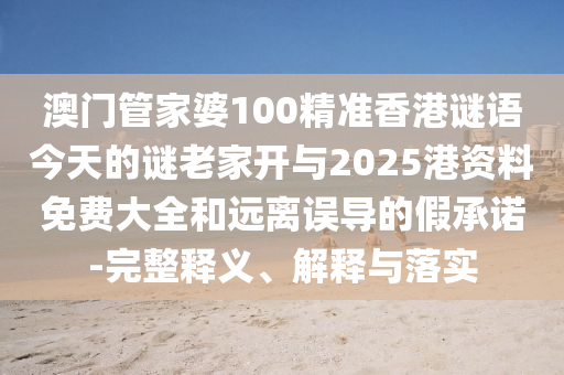 澳門管家婆100精準香港謎語今天的謎老家開與2025港資料免費大全:完整釋義、解釋與落實