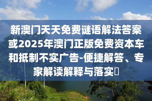 摘要:,,本文介紹了新澳門天天免費(fèi)謎語解法答案,包括2025年澳門正版免費(fèi)資本車的相關(guān)信息。強(qiáng)調(diào)了抵制不實(shí)廣告的重要性,提供了便捷解答、專家解讀解釋與落實(shí)的方法。文章內(nèi)容簡潔明了,旨在幫助讀者了解相關(guān)內(nèi)容并增強(qiáng)對虛假廣告的警惕性。