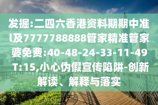 二四六香港資料期期中準(zhǔn)l及7777788888管家精準(zhǔn)管家婆免費:40-48-24-33-11-49 T:15”的創(chuàng)新解讀、解釋與落實,以及警惕虛假宣傳陷阱