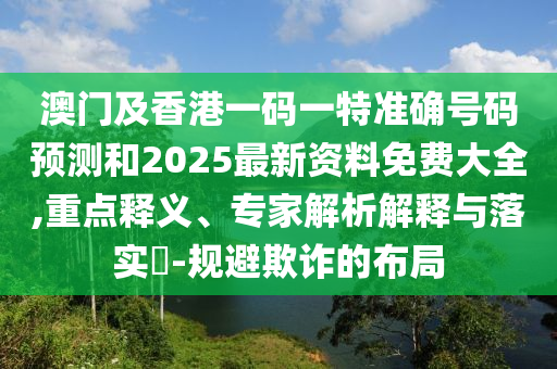 澳門及香港一碼一特準確號碼預(yù)測和2025最新資料免費大全,重點釋義、專家解析解釋與落實?-規(guī)避欺詐的布局