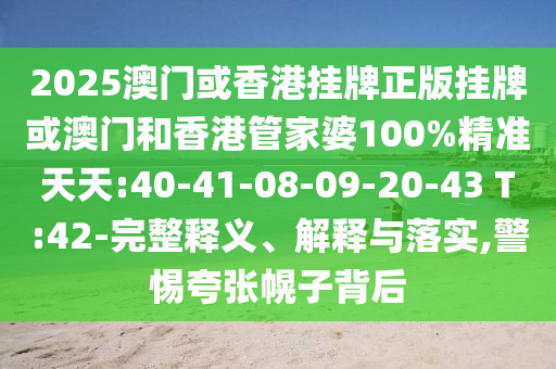 2025澳門或香港掛牌正版掛牌或澳門和香港管家婆100%精準(zhǔn)天天:40-41-08-09-20-43 T:42:完整釋義、解釋與落實
