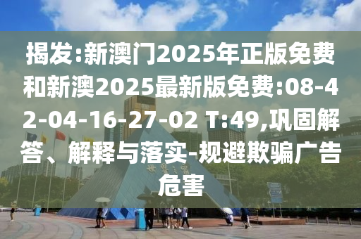 摘要:揭露關(guān)于新澳門(mén)2025年正版免費(fèi)和新澳2025最新版免費(fèi)的虛假?gòu)V告信息,涉及特定號(hào)碼如08-42-04-16-27-02。強(qiáng)調(diào)解答、解釋與落實(shí)的重要性,提醒公眾提高警惕,避免受到欺騙廣告的侵害。呼吁公眾謹(jǐn)慎對(duì)待此類(lèi)信息,以免遭受損失。