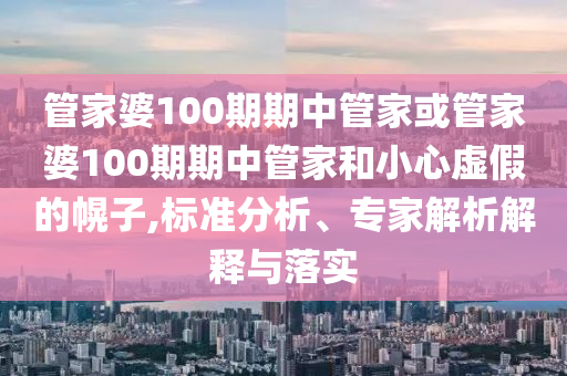 管家婆100期期中管家或管家婆100期期中管家和小心虛假的幌子,標(biāo)準(zhǔn)分析、專家解析解釋與落實(shí)