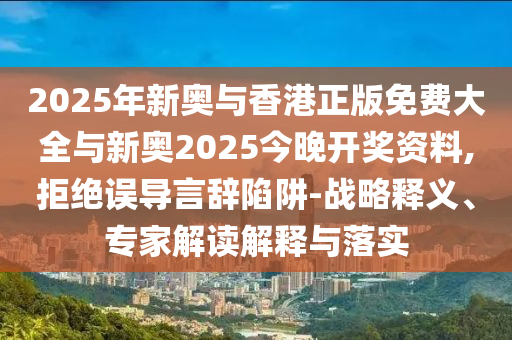2025年新奧與香港正版免費大全與新奧2025今晚開獎資料,拒絕誤導(dǎo)言辭陷阱-戰(zhàn)略釋義、專家解讀解釋與落實