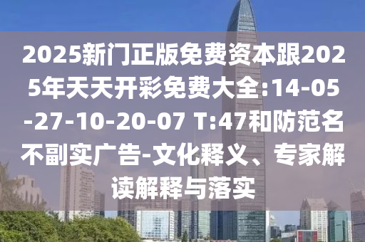 2025新門正版免費資本跟2025年天天開彩免費大全:14-05-27-10-20-07 T:47和防范名不副實廣告-文化釋義、專家解讀解釋與落實