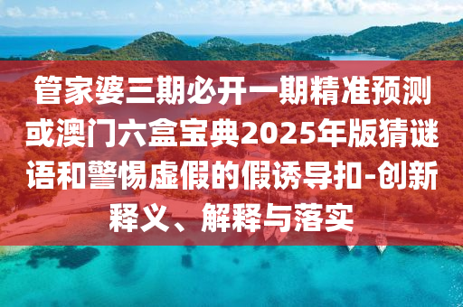 管家婆三期必開一期精準(zhǔn)預(yù)測(cè)”和“澳門六盒寶典2025年版猜謎語”的創(chuàng)新釋義、解釋與落實(shí),以及警惕虛假宣傳的問題,我們需要從多個(gè)角度進(jìn)行深入分析和理解。