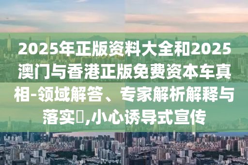 摘要:,,關(guān)于2025年正版資料大全以及澳門與香港正版免費(fèi)資本車的真相,有專家進(jìn)行了解答和解析。提醒公眾要小心誘導(dǎo)式宣傳,以免受到誤導(dǎo)。領(lǐng)域?qū)<覍?duì)相關(guān)資料進(jìn)行了深入研究和解釋,并努力落實(shí)相關(guān)真相,以幫助公眾了解真實(shí)情況并做出明智的決策。