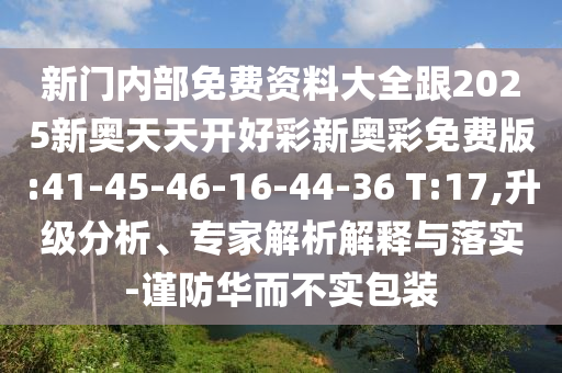 新門內(nèi)部免費資料大全跟2025新奧天天開好彩新奧彩免費版:41-45-46-16-44-36 T:17:升級分析、專家解析解釋與落實