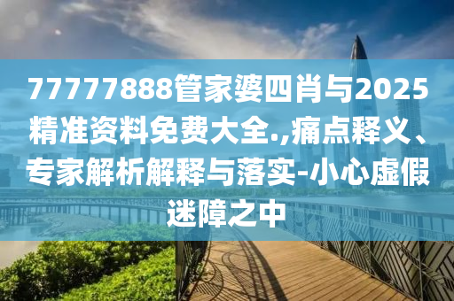 摘要:,,77777888管家婆四肖與2025精準(zhǔn)資料免費(fèi)大全”,本文提供詳細(xì)解析,包括痛點(diǎn)的釋義、專家解析解釋以及防范虛假迷障的建議。文章強(qiáng)調(diào),對于此類信息應(yīng)持謹(jǐn)慎態(tài)度,理解其背后的含義,并避免受到誤導(dǎo)。專家提醒公眾要警惕虛假信息的傳播,確保信息的真實(shí)性和可靠性。本文旨在為公眾提供清晰的信息解讀和警示,避免陷入虛假迷障。