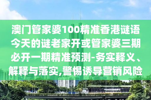 摘要:,,本文討論了澳門管家婆的精準預(yù)測和香港謎語,涉及對謎老家的解讀和預(yù)測。文章強調(diào)務(wù)實釋義、解釋與落實的重要性,并提醒讀者警惕誘導(dǎo)營銷風(fēng)險。內(nèi)容簡短明了,提醒人們理性對待相關(guān)預(yù)測和解讀,避免受到不實宣傳的影響。