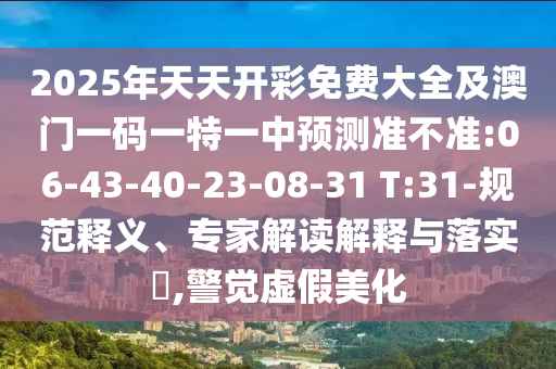 2025年天天開彩免費(fèi)大全及澳門一碼一特一中預(yù)測準(zhǔn)不準(zhǔn):06-43-40-23-08-31 T:31-規(guī)范釋義、專家解讀解釋與落實(shí)?,警覺虛假美化