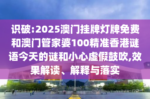識破:2025澳門掛牌燈牌免費和澳門管家婆100精準香港謎語今天的謎和小心虛假鼓吹,效果解讀、解釋與落實