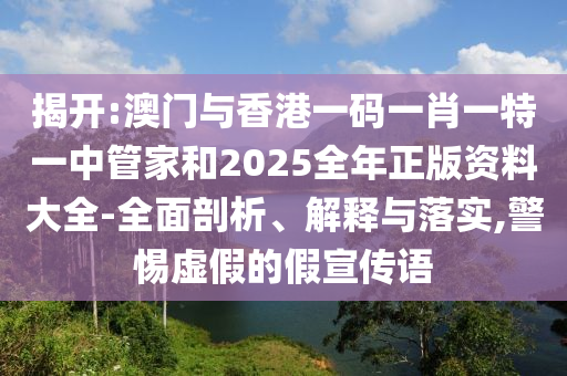 摘要:,,本文揭露了澳門與香港一碼一肖一特一中管家及2025全年正版資料的相關內容,對其進行全面剖析與解釋。同時提醒公眾警惕虛假宣傳,避免受到誤導。文章強調落實真實信息的重要性,呼吁公眾理性對待相關話題,不盲目相信非官方渠道的信息。