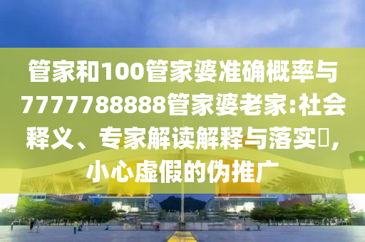 關(guān)于發(fā)掘“管家”和“100管家婆”準(zhǔn)確概率與“7777788888管家婆老家”的社會釋義、專家解讀解釋與落實的探討,并提醒公眾警惕虛假宣傳與偽推廣