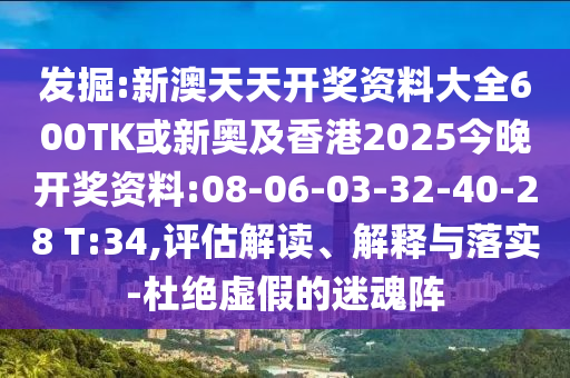 新澳天天開獎資料大全600TK或新奧及香港2025今晚開獎資料:08-06-03-32-40-28 T:34”的解讀、評估與落實(shí),警惕虛假宣傳的分析