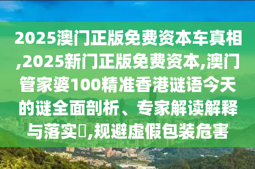 2025澳門正版免費(fèi)資本車真相,2025新門正版免費(fèi)資本,澳門管家婆100精準(zhǔn)香港謎語今天的謎全面剖析、專家解讀解釋與落實(shí)?,規(guī)避虛假包裝危害