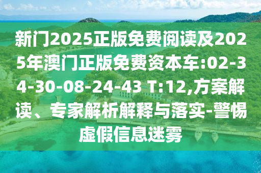 新門2025正版免費(fèi)閱讀及2025年澳門正版免費(fèi)資本車:02-34-30-08-24-43 T:12:方案解讀、專家解析解釋與落實(shí)