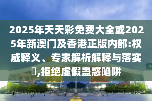 2025年天天彩免費(fèi)大全”及“2025年新澳門及香港正版內(nèi)部”的權(quán)威釋義、專家解析解釋與落實(shí),以及警惕虛假宣傳與蠱惑陷阱的指南