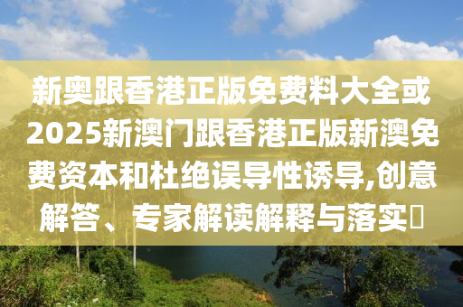 新奧與香港正版免費料大全或2025新澳門與香港正版新澳免費資本創(chuàng)意解答、專家解讀解釋與落實,以及杜絕誤導性誘導的全面解析