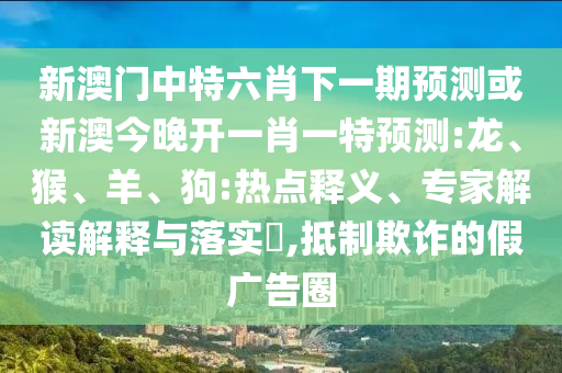 新澳門中特六肖下一期預(yù)測或新澳今晚開一肖一特預(yù)測:龍、猴、羊、狗:熱點釋義、專家解讀解釋與落實?,抵制欺詐的假廣告圈