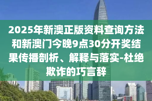 2025年新澳正版資料查詢方法和新澳門(mén)今晚9點(diǎn)30分開(kāi)獎(jiǎng)結(jié)果,杜絕欺詐的巧言辭”的傳播剖析、解釋與落實(shí)