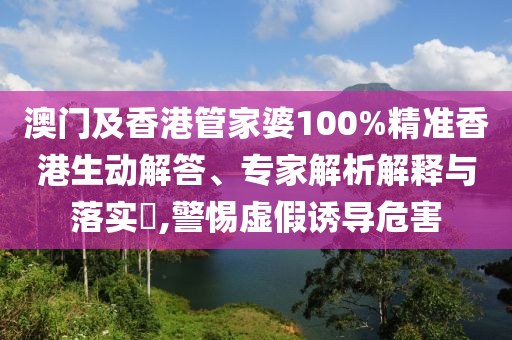 摘要:澳門和香港的管家婆提供100%精準的解答,包括生動解答和專家解析解釋。他們致力于提供真實可靠的信息和指導,以落實專業(yè)的服務。公眾應保持警惕,避免受到虛假誘導的危害。建議在尋求相關服務時,選擇信譽良好的來源,并謹慎評估信息的真實性。