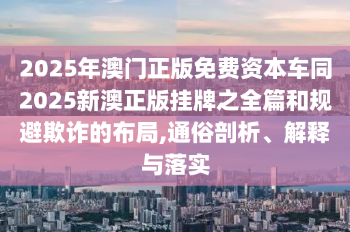2025年澳門正版免費資本車同2025新澳正版掛牌之全篇的通俗剖析、解釋與落實
