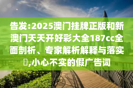 告發(fā):2025澳門掛牌正版和新澳門天天開好彩大全187cc全面剖析、專家解析解釋與落實?,小心不實的假廣告詞