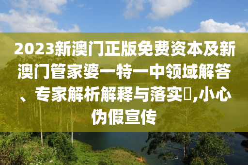 2023新澳門正版免費(fèi)資本及新澳門管家婆一特一中領(lǐng)域解答、專家解析解釋與落實(shí)?,小心偽假宣傳