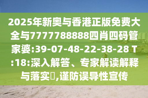 2025年新奧與香港正版免費大全與7777788888四肖四碼管家婆:39-07-48-22-38-28 T:18”關(guān)鍵詞的深入解答、專家解讀解釋與落實,以及警惕誤導(dǎo)性宣傳