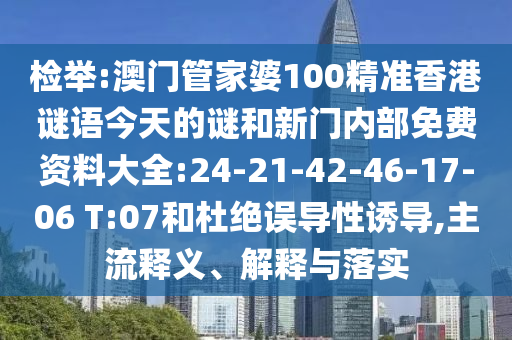 澳門管家婆100精準(zhǔn)香港謎語(yǔ)今天的謎和新門內(nèi)部免費(fèi)資料大全:24-21-42-46-17-06 T:07:主流釋義、解釋與落實(shí)