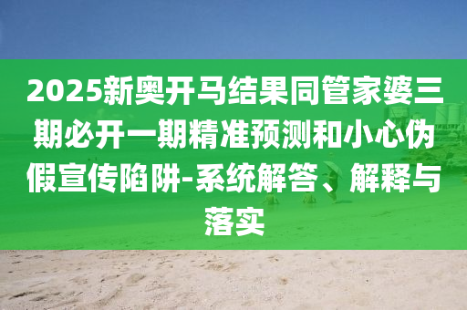2025新奧開馬結(jié)果同管家婆三期必開一期精準(zhǔn)預(yù)測(cè)和小心偽假宣傳陷阱-系統(tǒng)解答、解釋與落實(shí)