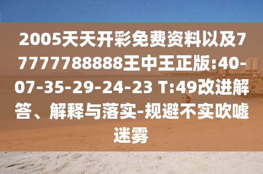 2005天天開彩免費資料以及77777788888王中王正版:40-07-35-29-24-23 T:49:改進解答、解釋與落實