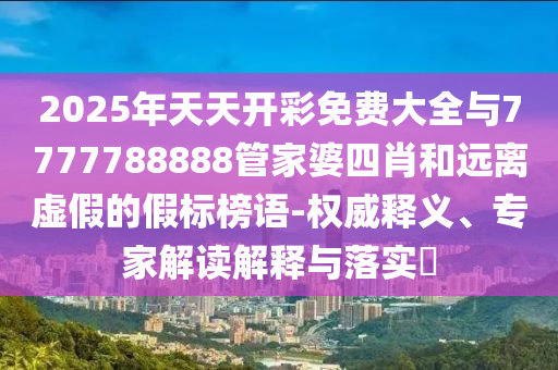 2025年天天開彩免費大全與7777788888管家婆四肖和遠離虛假的假標榜語-權(quán)威釋義、專家解讀解釋與落實?