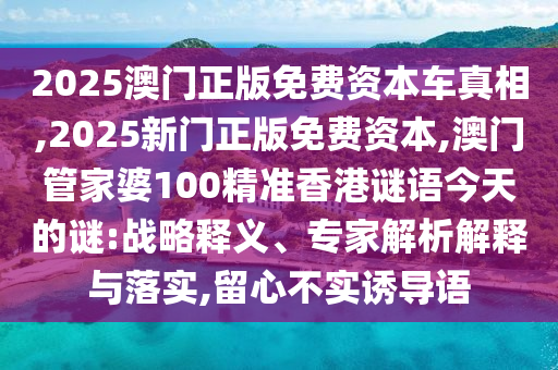 2025澳門正版免費(fèi)資本車真相,2025新門正版免費(fèi)資本,澳門管家婆100精準(zhǔn)香港謎語(yǔ)今天的謎:戰(zhàn)略釋義、專家解析解釋與落實(shí),留心不實(shí)誘導(dǎo)語(yǔ)