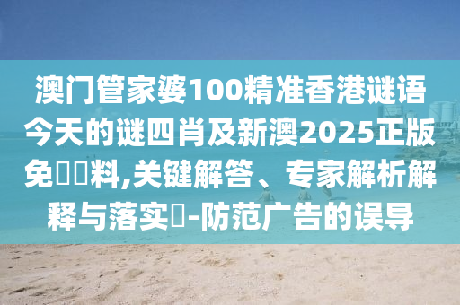 澳門管家婆100精準香港謎語今天的謎四肖及新澳2025正版免費資料,關鍵解答、專家解析解釋與落實?-防范廣告的誤導