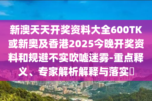 新澳天天開(kāi)獎(jiǎng)資料大全600TK”及“新奧及香港2025今晚開(kāi)獎(jiǎng)資料”的重點(diǎn)釋義、專家解析解釋與落實(shí),以及規(guī)避不實(shí)吹噓迷霧的探討