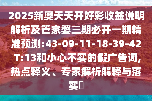 2025新奧天天開好彩收益說明解析及管家婆三期必開一期精準(zhǔn)預(yù)測(cè):43-09-11-18-39-42 T:13和小心不實(shí)的假廣告詞,熱點(diǎn)釋義、專家解析解釋與落實(shí)?