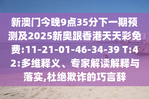 新澳門今晚9點(diǎn)35分下一期預(yù)測及2025新奧跟香港天天彩免費(fèi):11-21-01-46-34-39 T:42”與“杜絕欺詐的巧言辭”的多維釋義、專家解讀與落實(shí)