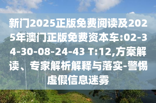 新門2025正版免費(fèi)閱讀及2025年澳門正版免費(fèi)資本車:02-34-30-08-24-43 T:12:方案解讀、專家解析解釋與落實(shí)