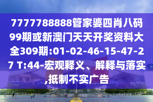 關(guān)于描述“7777788888管家婆四肖八碼99期”或“新澳門天天開獎(jiǎng)資料大全309期: 01-02-46-15-47-27 T:44”的宏觀釋義、解釋與落實(shí),以及警惕不實(shí)廣告的解析