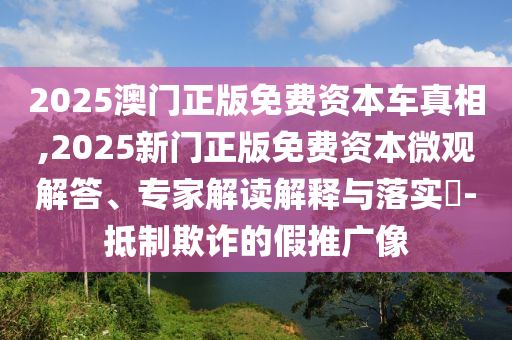 2025澳門正版免費資本車真相,2025新門正版免費資本微觀解答、專家解讀解釋與落實?-抵制欺詐的假推廣像