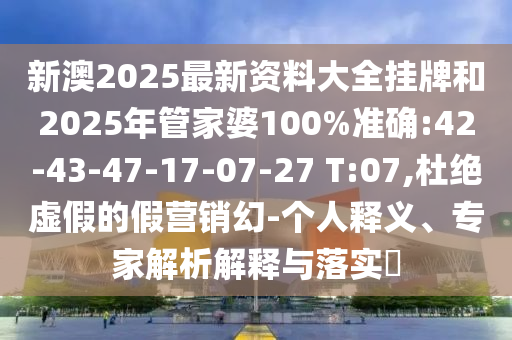 新澳2025最新資料大全掛牌和2025年管家婆100%準確:42-43-47-17-07-27 T:07:個人釋義、專家解析解釋與落實?