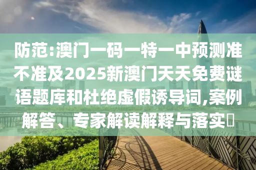關(guān)于防范澳門一碼一特一中預(yù)測(cè)的準(zhǔn)確性及2025新澳門天天免費(fèi)謎語(yǔ)題庫(kù)案例解答、專家解讀解釋與落實(shí),以及杜絕虛假誘導(dǎo)詞的全面釋義和警惕