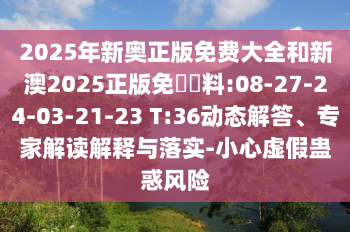2025年新奧正版免費大全和新澳2025正版免費資料:08-27-24-03-21-23 T:36動態(tài)解答、專家解讀解釋與落實-小心虛假蠱惑風(fēng)險