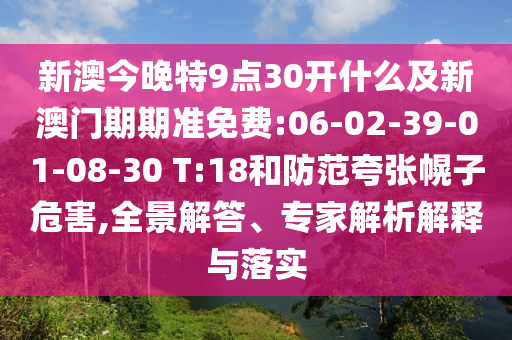 新澳今晚特9點30開什么及新澳門期期準(zhǔn)免費:06-02-39-01-08-30 T:18的全景解答、專家解析解釋與落實