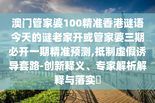 澳門管家婆100精準香港謎語今天的謎老家開或管家婆三期必開一期精準預測的創(chuàng)新釋義、專家解析解釋與落實?