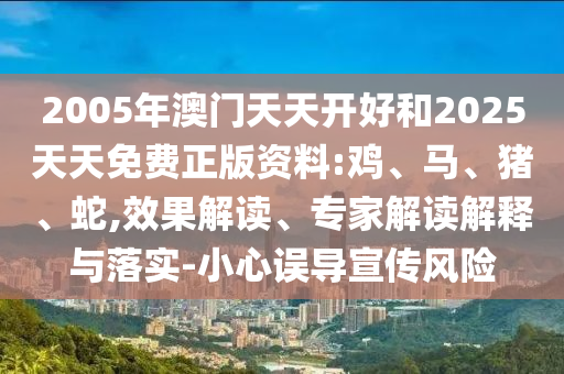 2005年澳門天天開好和2025天天免費正版資料:雞、馬、豬、蛇,效果解讀、專家解讀解釋與落實-小心誤導(dǎo)宣傳風(fēng)險