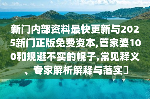 新門內(nèi)部資料最快更新與2025新門正版免費資本,管家婆100和規(guī)避不實的幌子,常見釋義、專家解析解釋與落實?